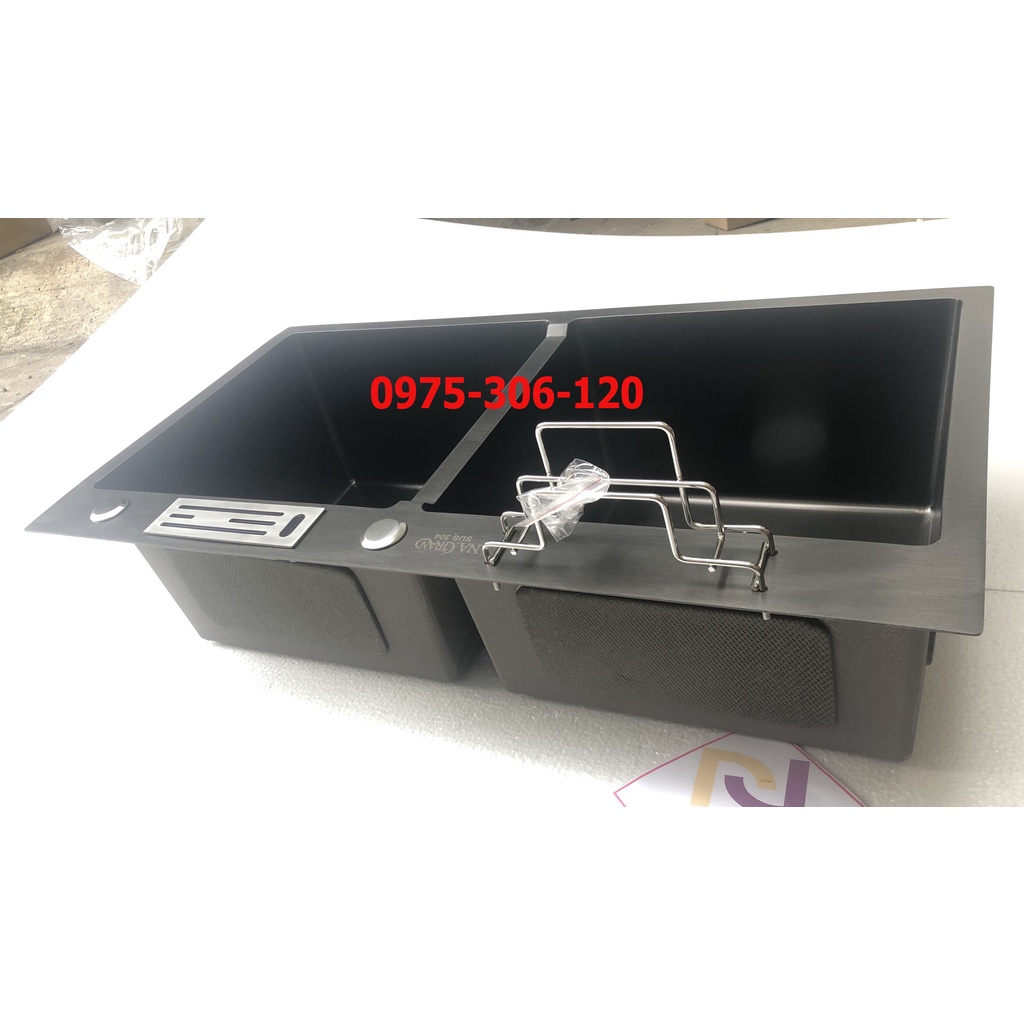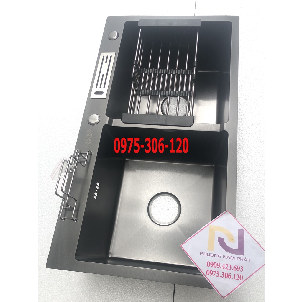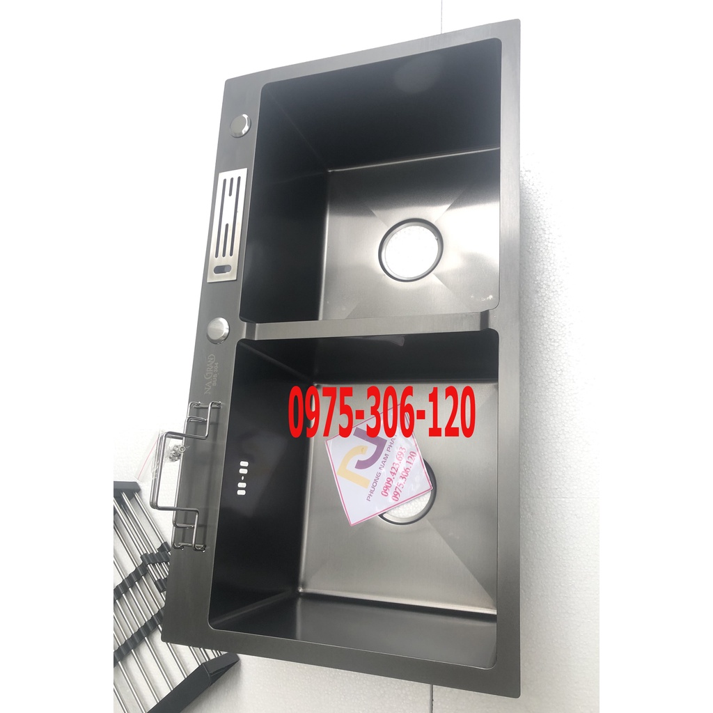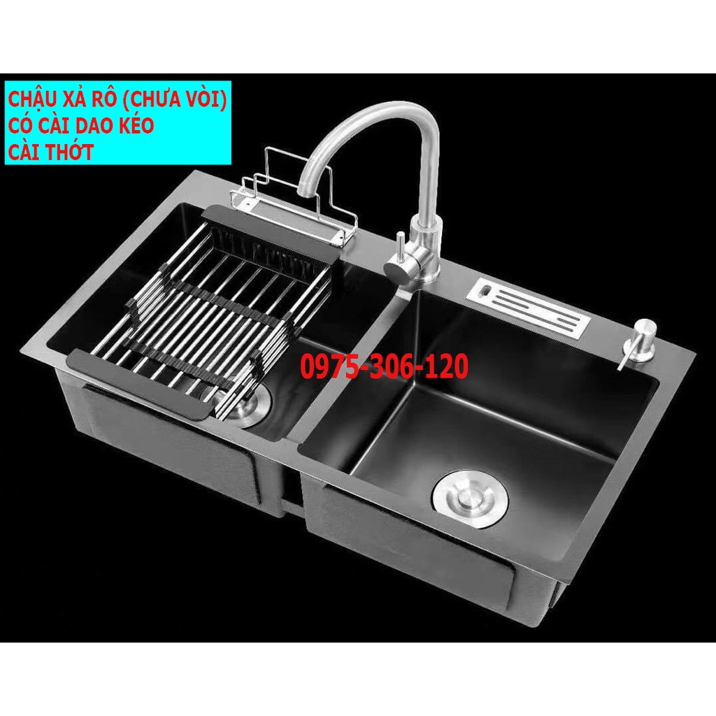 Combo Chậu Rửa Chén Bát CAO CẤP PHỦ NANO CHỐNG TRẦY XƯỚC N36 8245 CÀI DAO THỚT và Rổ Rút Đa Năng và xả chậu