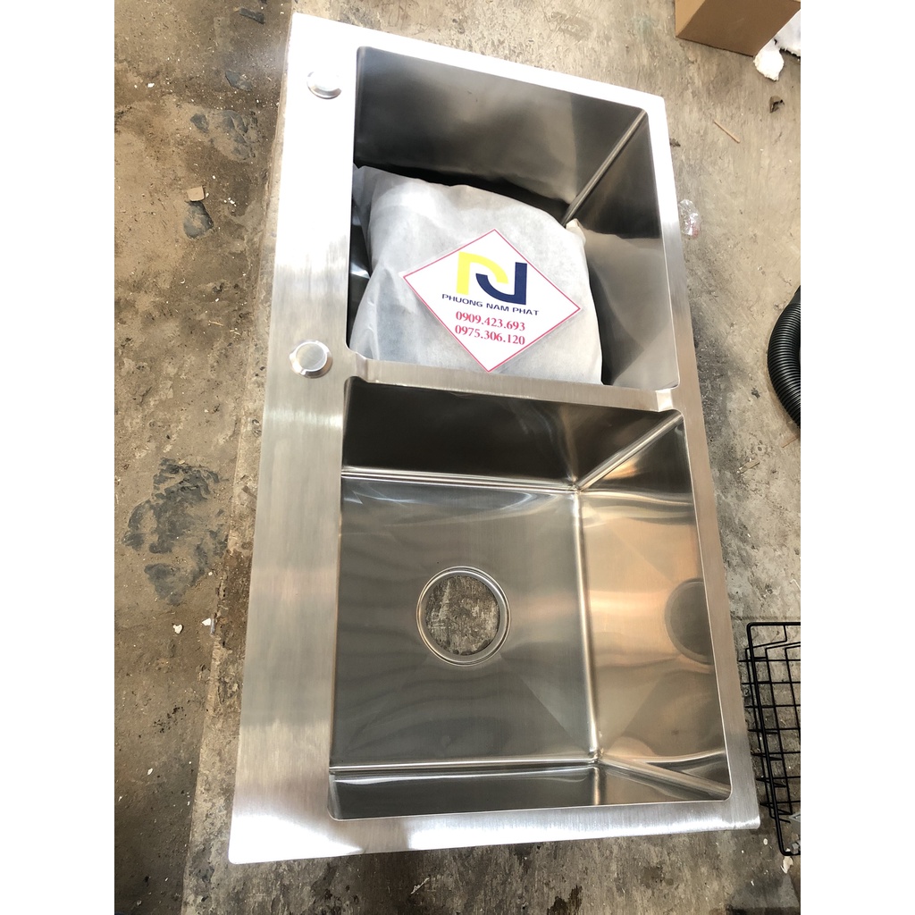 -Chậu làm từ inox SUS 304 sẽ sáng bóng,không bị han gỉ, dày, bề ngoài chậu được sơn 1 lớp cách ồn màu đen quanh chậu nên khi rửa bán đĩa sẽ không nghe tiếng kêu ổn từ nước xả hay tiếng bát đĩa va vào thành chậu.