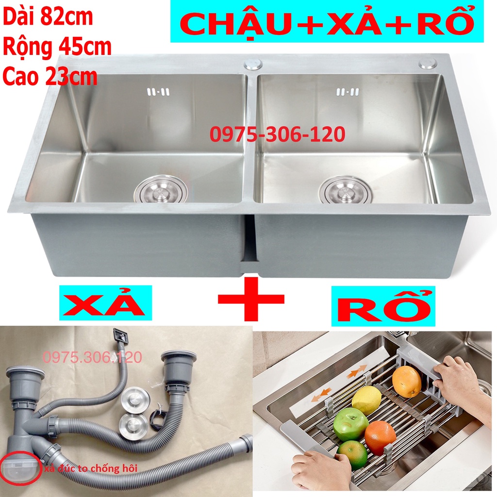 Nhà cửa & Đời sống > Dụng cụ & Thiết bị tiện ích > Chậu rửa & vòi nước || Combo Chậu Rửa Chén Bát INOX SUS 304 N5 8245 NA.GRAND và bộ xả chậu thoát nước tặng Rổ Đa NăngCòn hàng