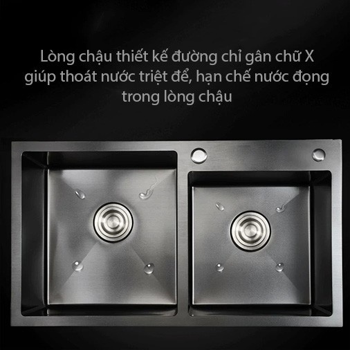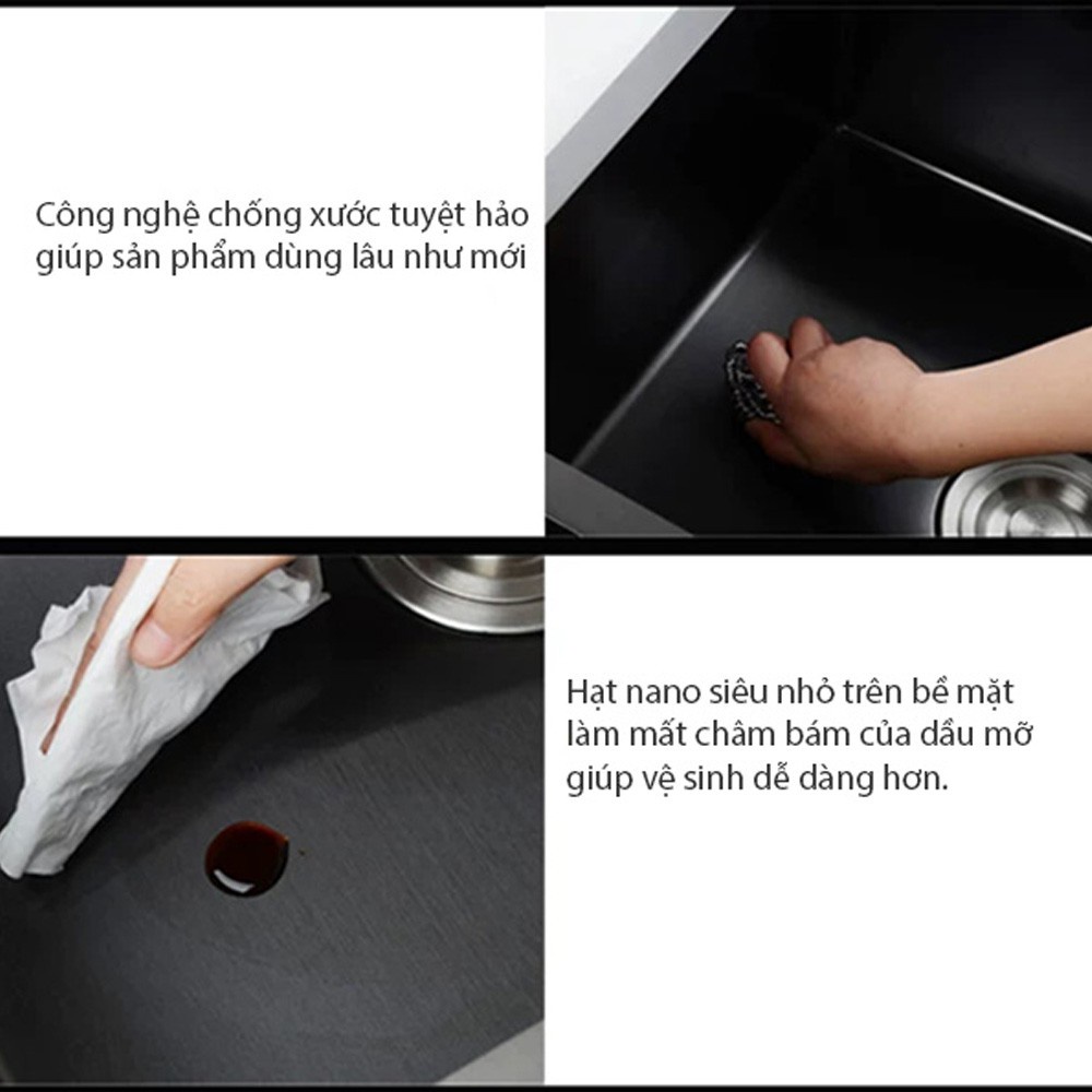 Công nghê: inox SUS 304 được phủ 1 lớp NANO Dày toàn chậu để chống trầy xước và bao han gỉ sét, Nhìn đẹp mắt và hiện đại