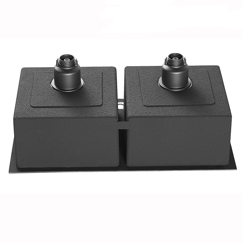 Bề ngoài chậu được sơn 1 lớp cách ồn màu đen quanh chậu nên khi rửa bát đĩa sẽ không nghe tiếng kêu ổn từ nước xả hay tiếng bát đĩa va vào thành chậu. Lớp sơn màu đen này còn có tác dụng chống axit ăn mòn trong môi trường nước phèn