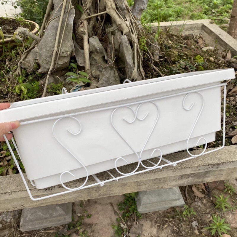 Combo Chậu và giá treo 48x20x16 chậu trồng cây trồng hoa, giá sắt khung sắt treo ban công lan can