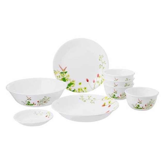 Combo chén dĩa thuỷ tinh Mỹ Corelle Provence Garden 8 món 8-PVG