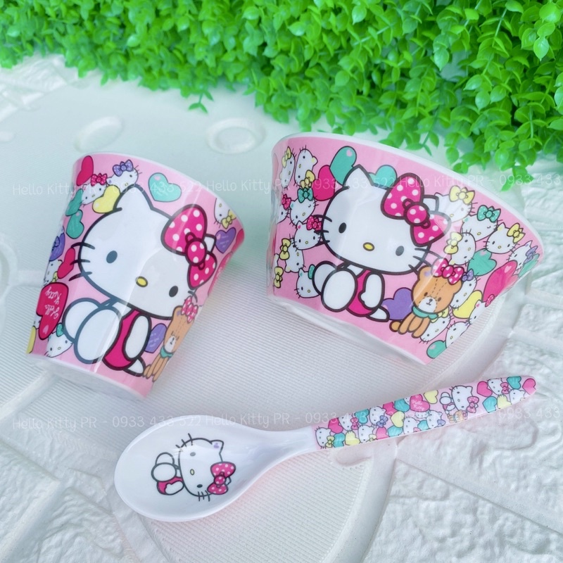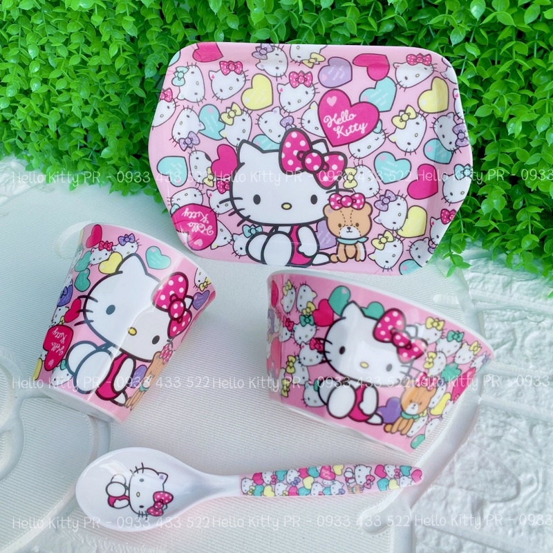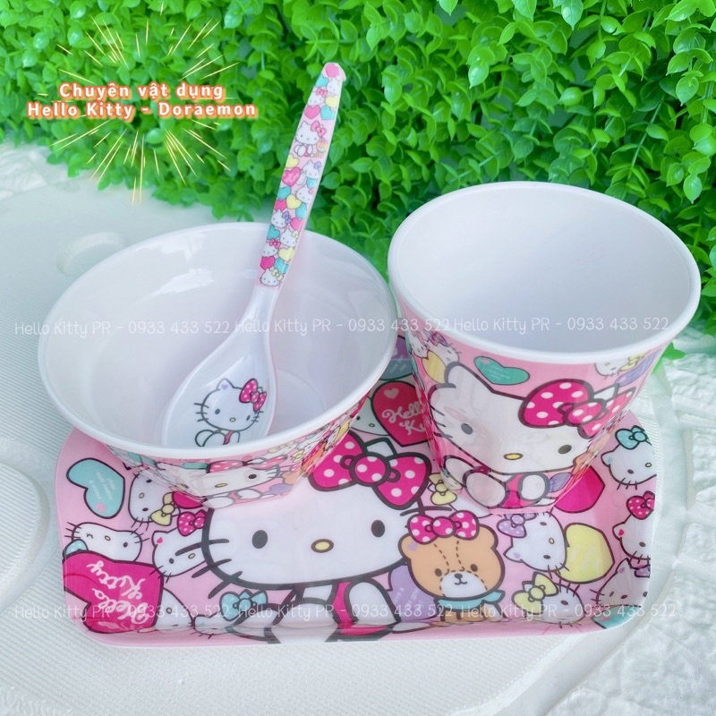 Combo chén ly muỗng dĩa Hello Kitty gấu