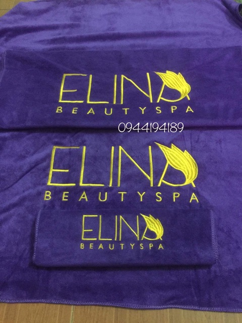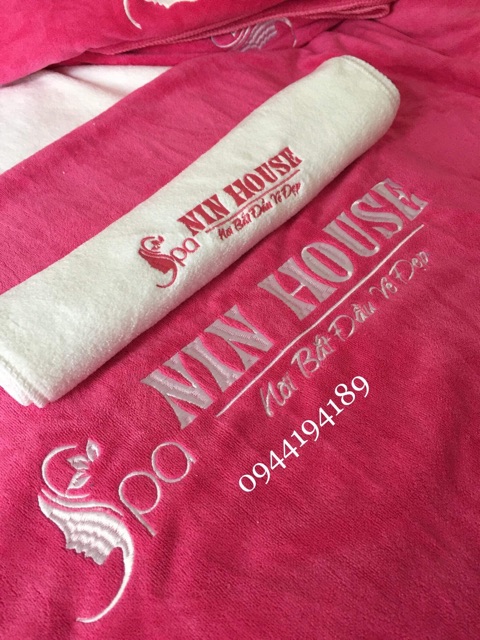 Khăn trải thêu ít nhất từ 10c nha khách. Khách ib chọn màu và gửi logo cho shop nhé