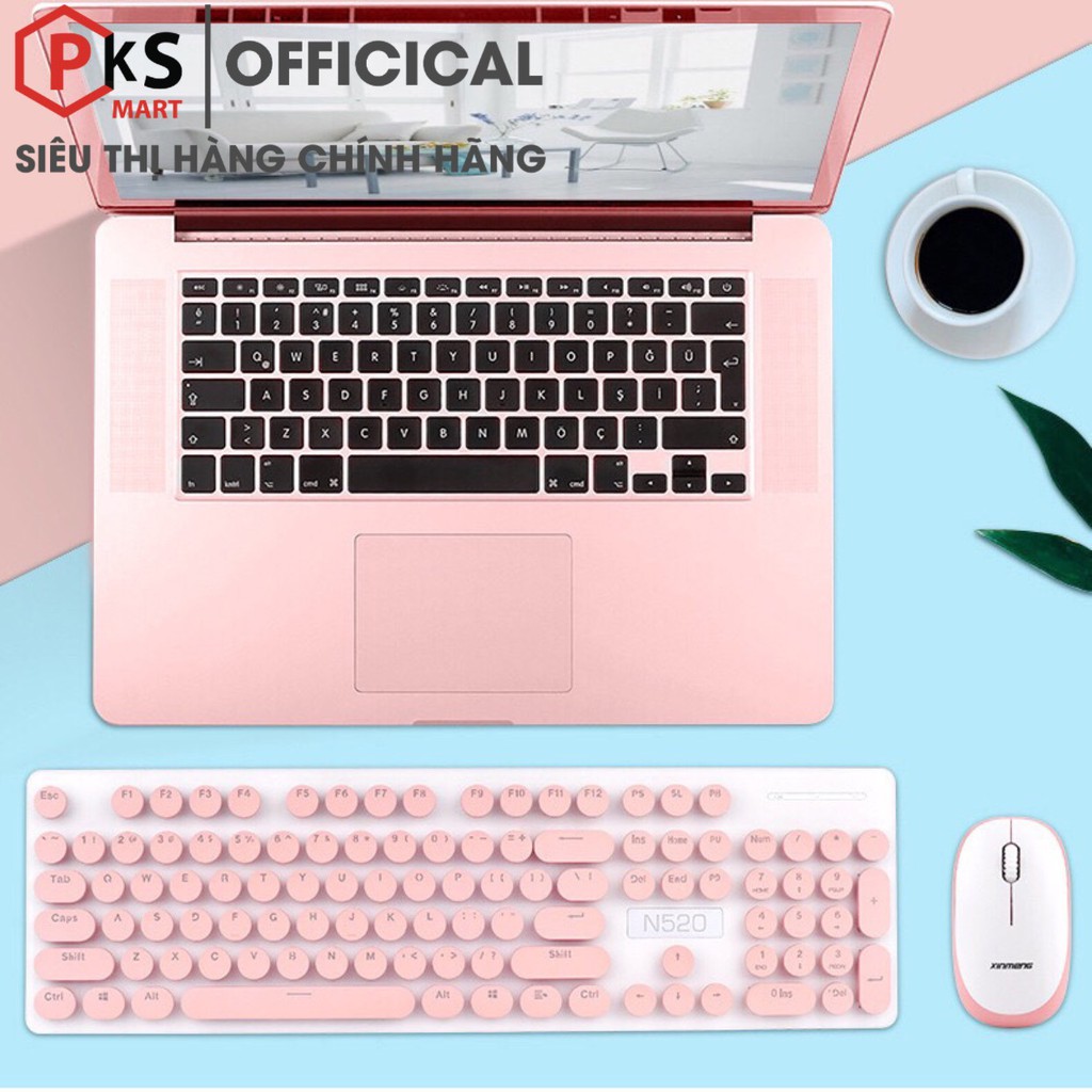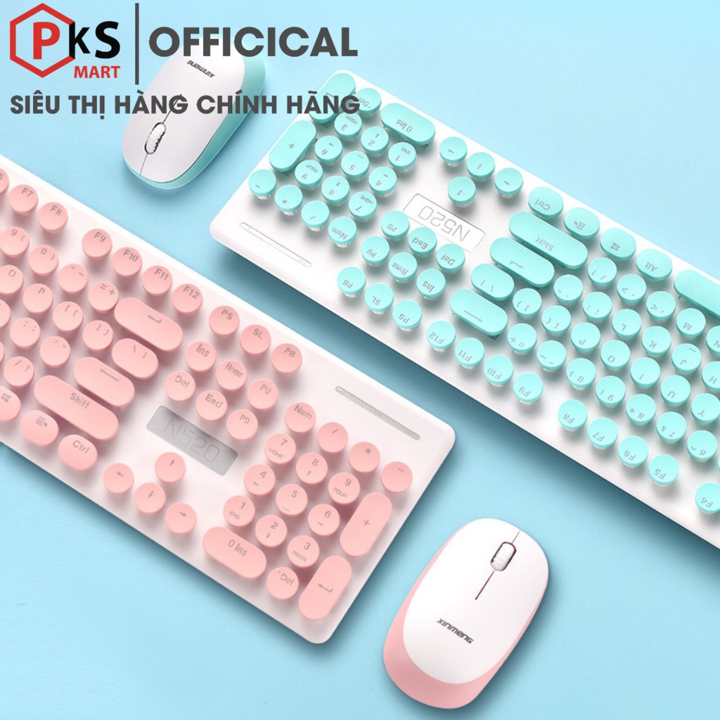 Combo Chuột và Bàn Phím Không Dây Nút Tròn Xinmeng N520 Có 3 Màu Đen, Hồng, Xanh, Bảo hành 12 Tháng Lỗi Đổi Mới