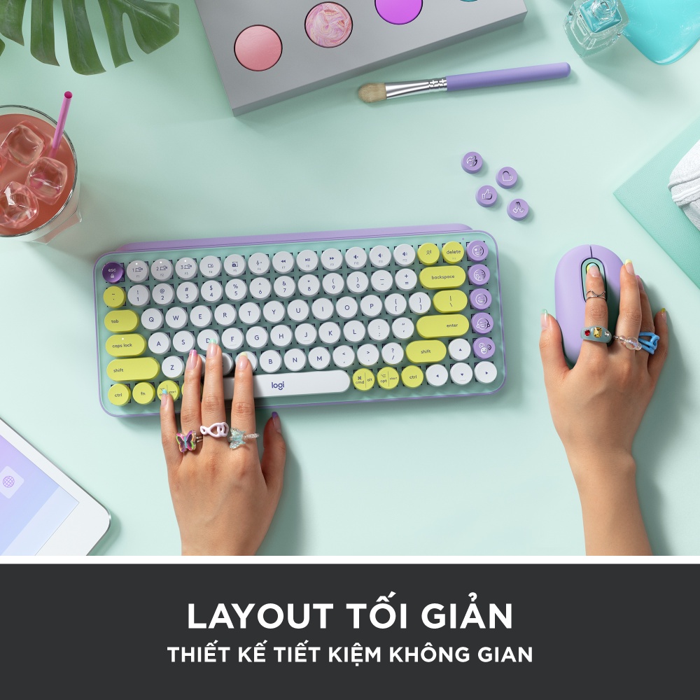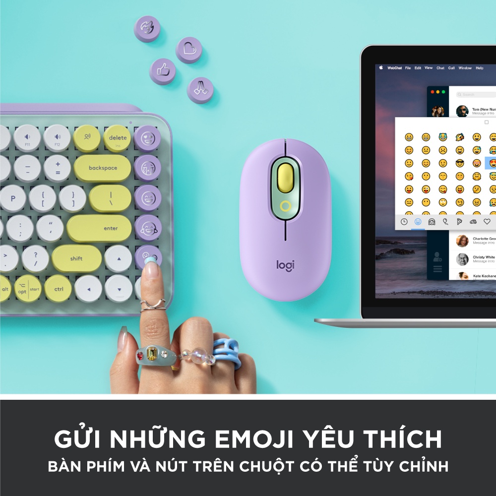 Combo chuột và phím cơ không dây Logitech POP KEYS&MOUSE với phím emoji có thể điều chỉnh