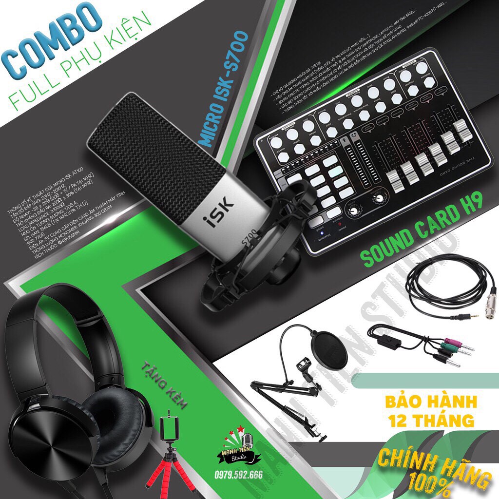 [COMBO CHUYÊN NGHIỆP] Trọn bộ combo ISK S700 + H9 Kèm Phụ Kiện - vô tư hát karaoke, livestream bán hàng