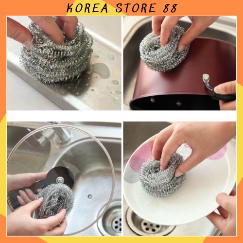 Combo cọ xoong nồi bằng thép không rỉ, búi cọ đánh xoong siêu bền vệ sinh sạch sẽ 88137 Korea Store 88