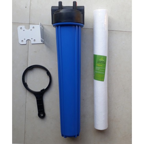 [Combo] Cốc Lọc Thô Chặn Đầu Nguồn Dài 20 Inch Kèm Lõi Lọc, Tay Vặn, Giá Treo (ren 21mm)- Màu sắc: Trắng hoặc Xanh