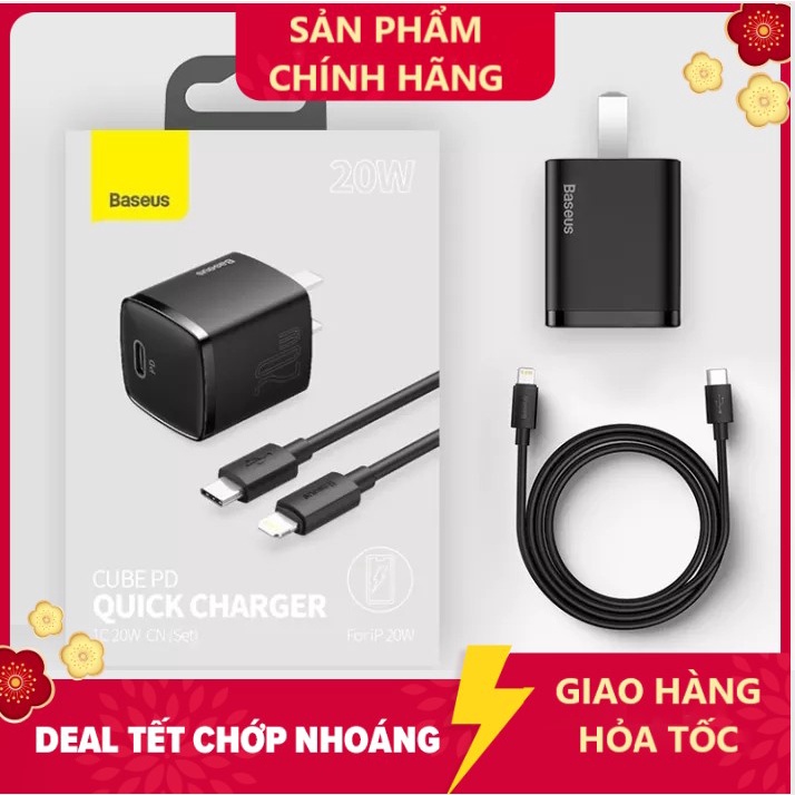 COMBO - Cốc Sạc Nhanh Baseus 20W Super Si / Super Si 30W/ 20W Cube Hỗ Trợ QC3.0 PD Cho iPhone 12 / dây sạc 20W BH 12T