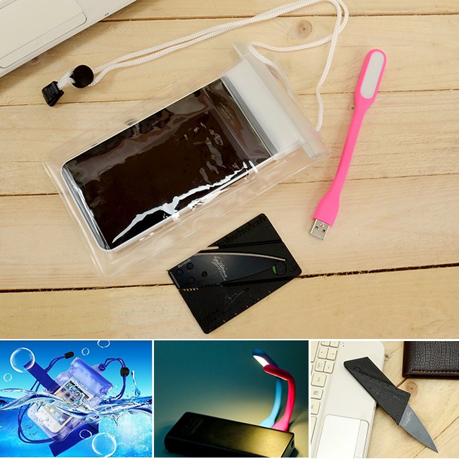 Combo dao ATM + Túi chống nước cho điện thoại + Đèn LED USB