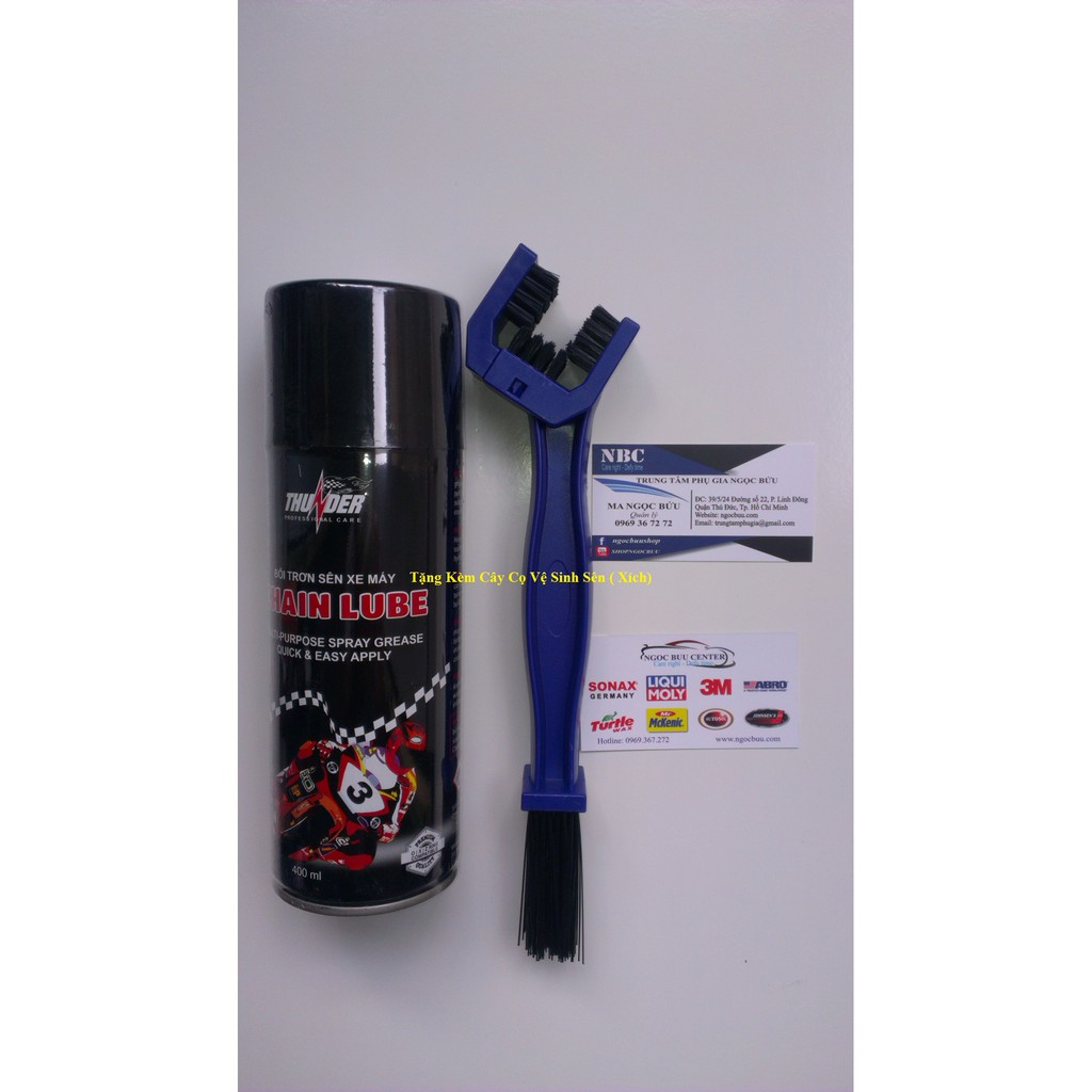 Combo Dầu bôi trơn ( bảo dưỡng) nhông sên dĩa Thunder Chain Lube 400ml và cọ sên.