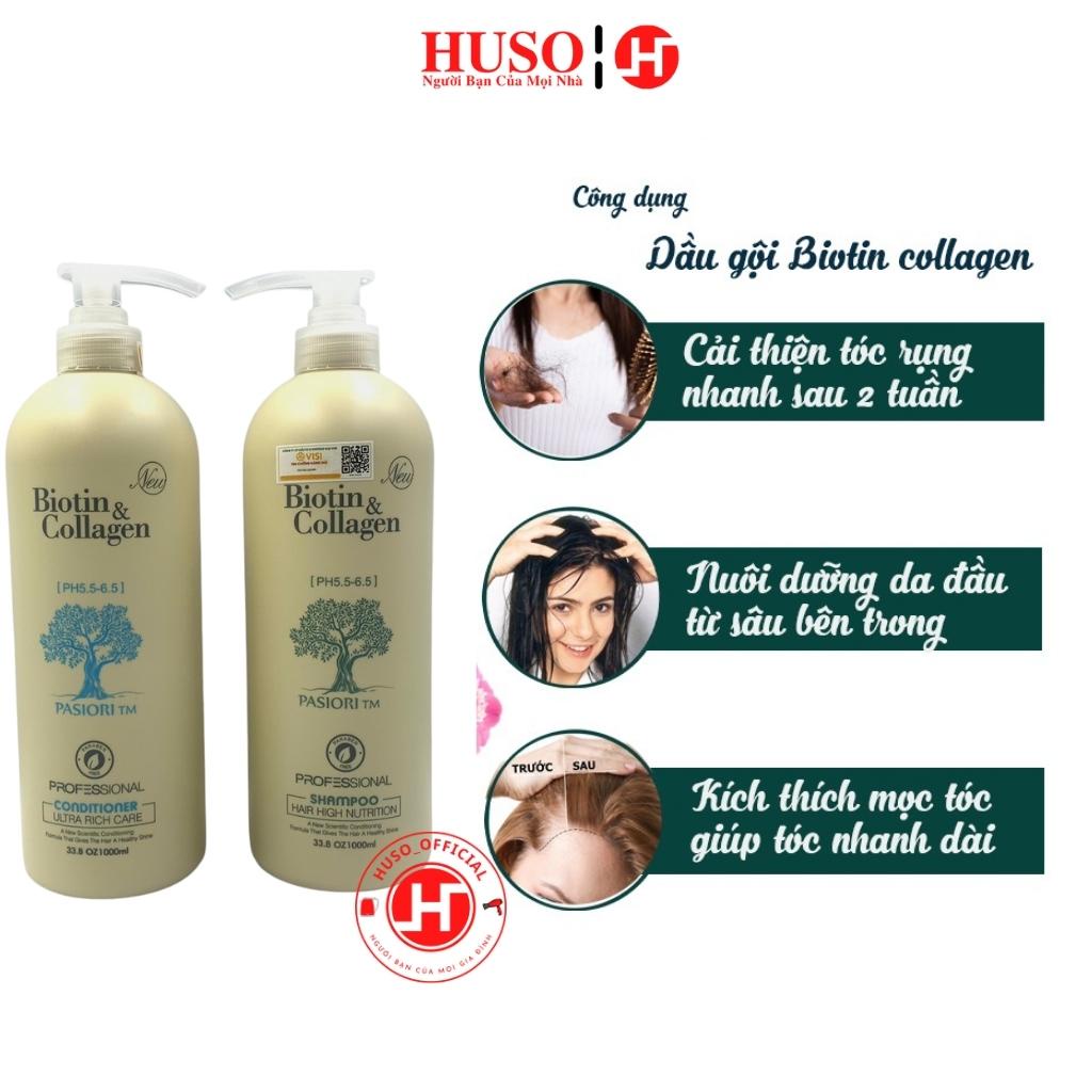 Giới thiệu Combo dầu gội Biotin Collagen chống rụng kích thích mọc tóc, phục hồi tóc 1000ml - HUSO