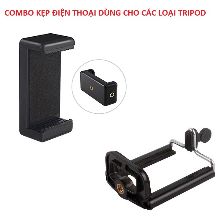 Combo Đầu kẹp điện thoại Có 2 Loại Cho Gậy Selfie Chân Máy Ảnh Đèn Livestream