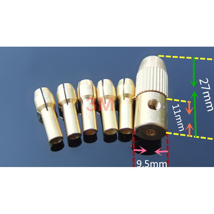 Kích thước đầu kẹp mũi khoan có 10 Loại có thể kẹp mũi từ 0.2mm cho tới 3.2mm: