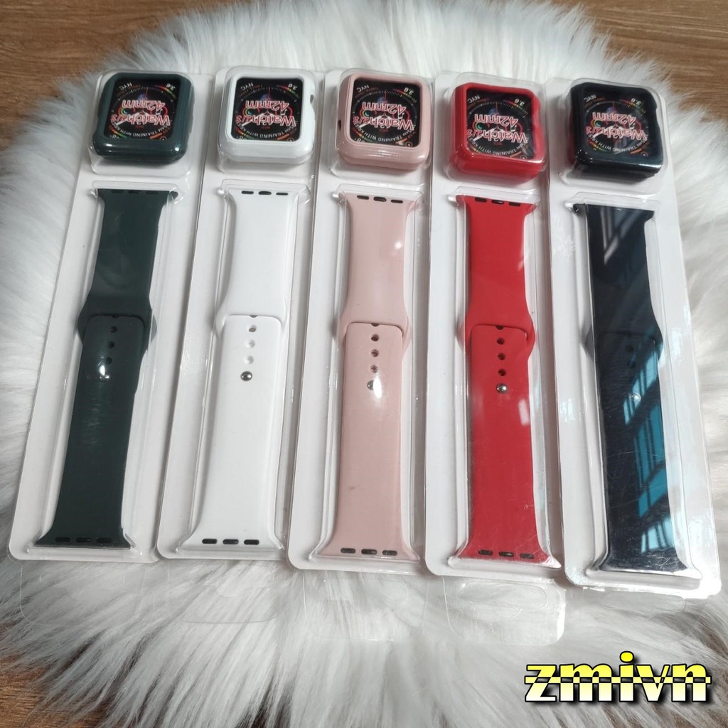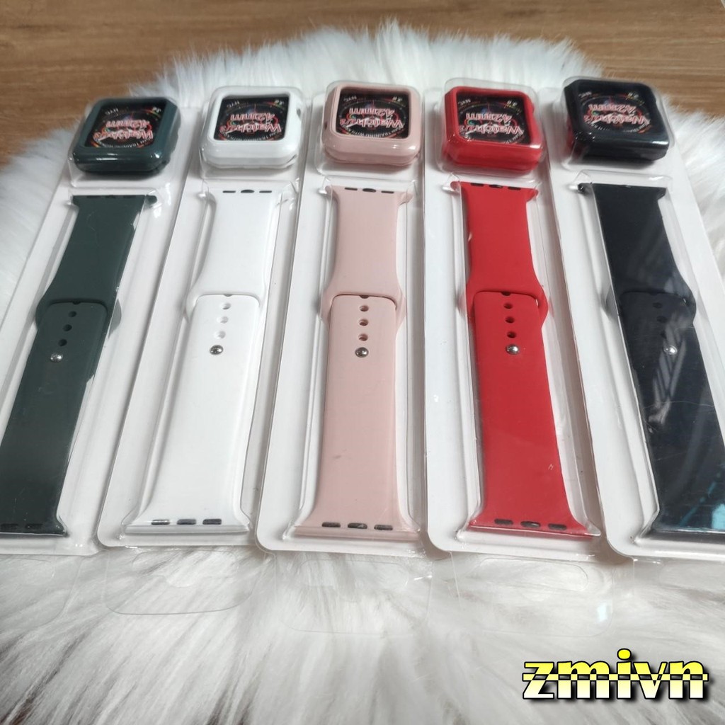 Combo dây cao su kèm ốp viền cùng màu dành cho Apple Watch