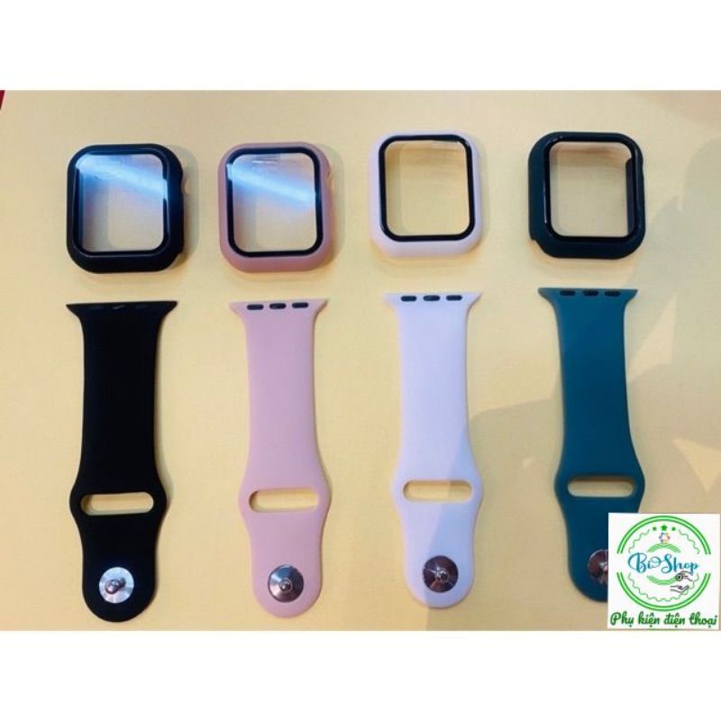 ⚡ Combo Dây cao su + ốp dán mặt apple watch bảo vệ 360 độ 4 màu seri 1 2 3 4 5 38mm 42mm 40mm 44mm