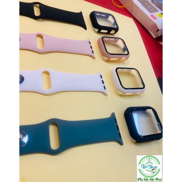 Giới thiệu ⚡ Combo Dây cao su + ốp dán mặt apple watch bảo vệ 360 độ 4 màu seri 1 2 3 4 5 38mm 42mm 40mm 44mm