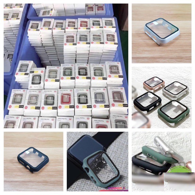 Giới thiệu Combo Dây cao su + ốp dán mặt apple watch bảo vệ 360 độ 4 màu seri 1 2 3 4 5 38mm 42mm 40mm 44mm