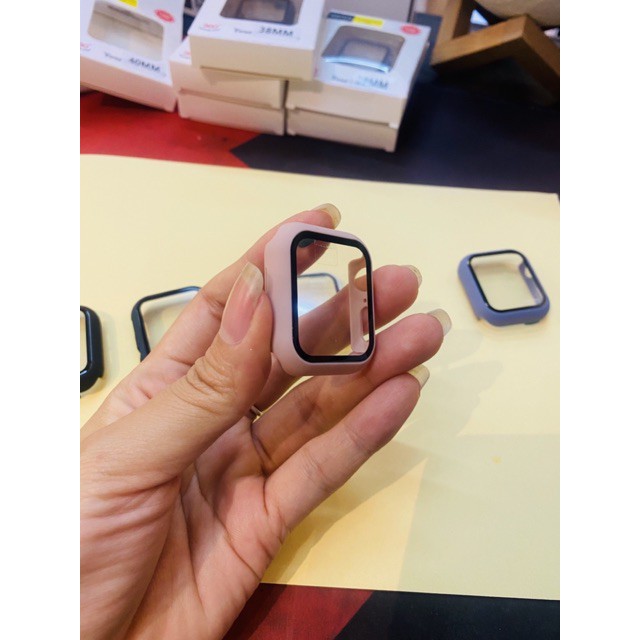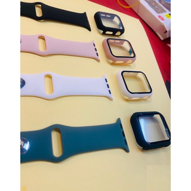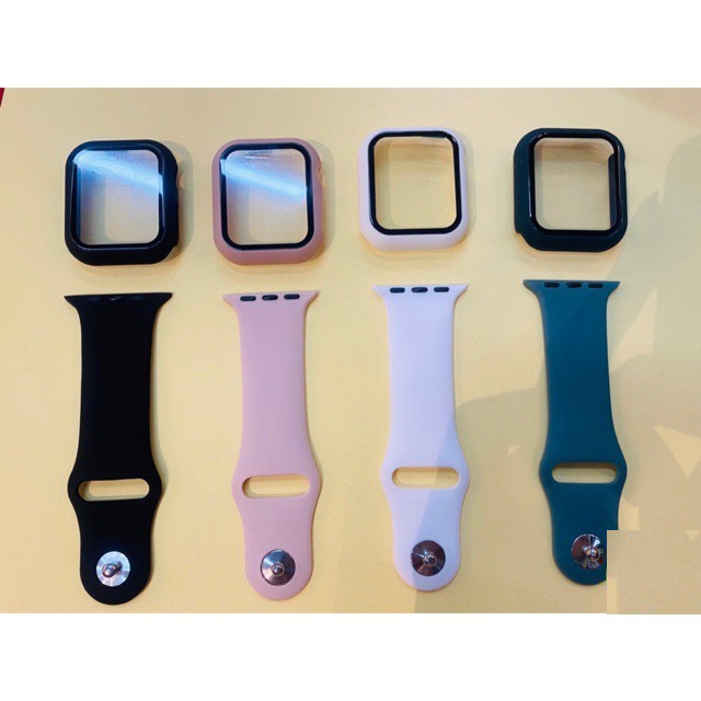Combo Dây cao su + ốp dán mặt apple watch bảo vệ 360 độ 4 màu seri 1 2 3 4 5 38mm 42mm 40mm 44mm