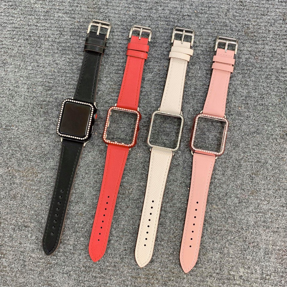 Điện Thoại & Phụ Kiện > Phụ kiện > Phụ kiện cho đồng hồ thông minh || Combo dây da khóa trắng và ốp viền đính đá dành cho apple watchCòn hàng