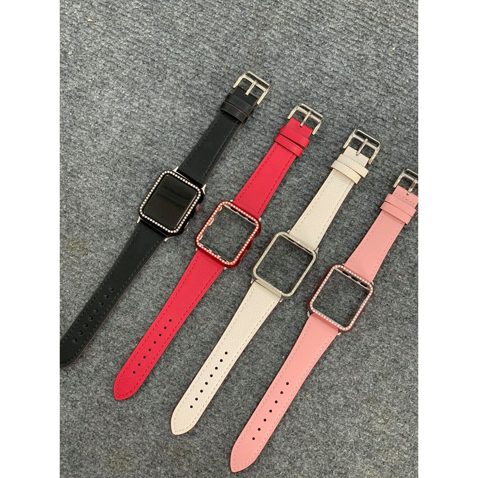 Combo dây da khóa trắng và ốp viền đính đá dành cho apple watch