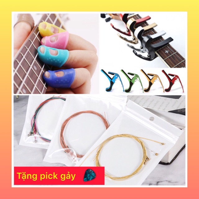Combo dây đàn + Capo + Bọc ngón dành cho người mới chơiGồm