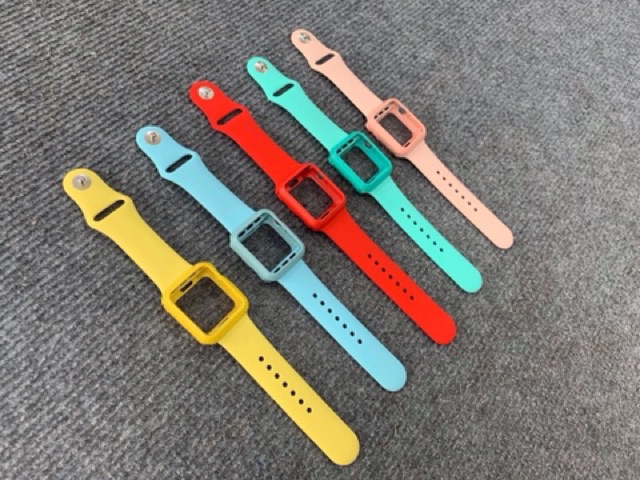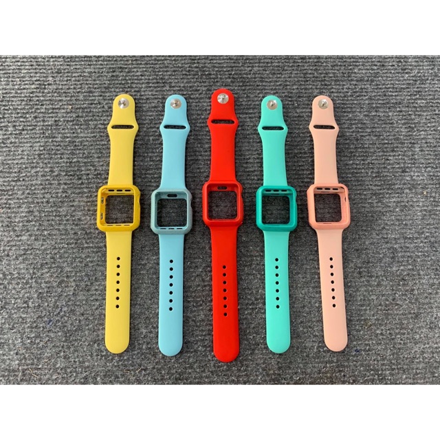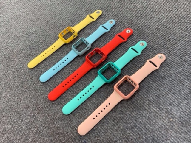 Combo dây Silicon + ốp Silicon bảo vệ 𝗔𝗽𝗽𝗹𝗲𝗪𝗮𝘁𝗰𝗵⌚️🍭🍭𝟱 𝗺𝗮̀𝘂 : Đỏ / Vàng / Hồng / Xanh Mint / Xanh ngọc