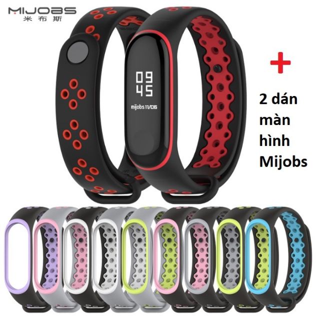 Combo dây đeo thay thế sport MIJOBS + 2 dán màn hình cho Xiaomi Miband 3, 4
