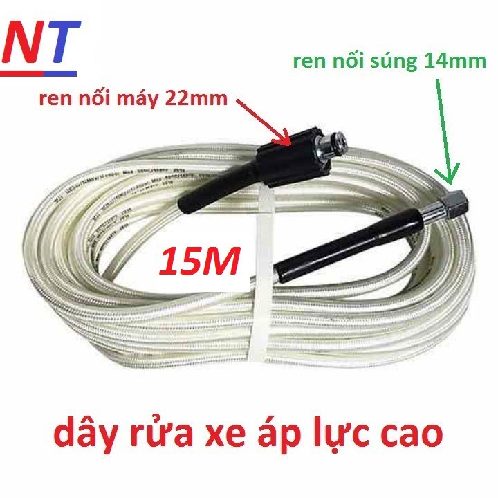 Combo dây rửa xe 15 mét áp lực cao tặng kèm súng có điều chỉnh tia nước