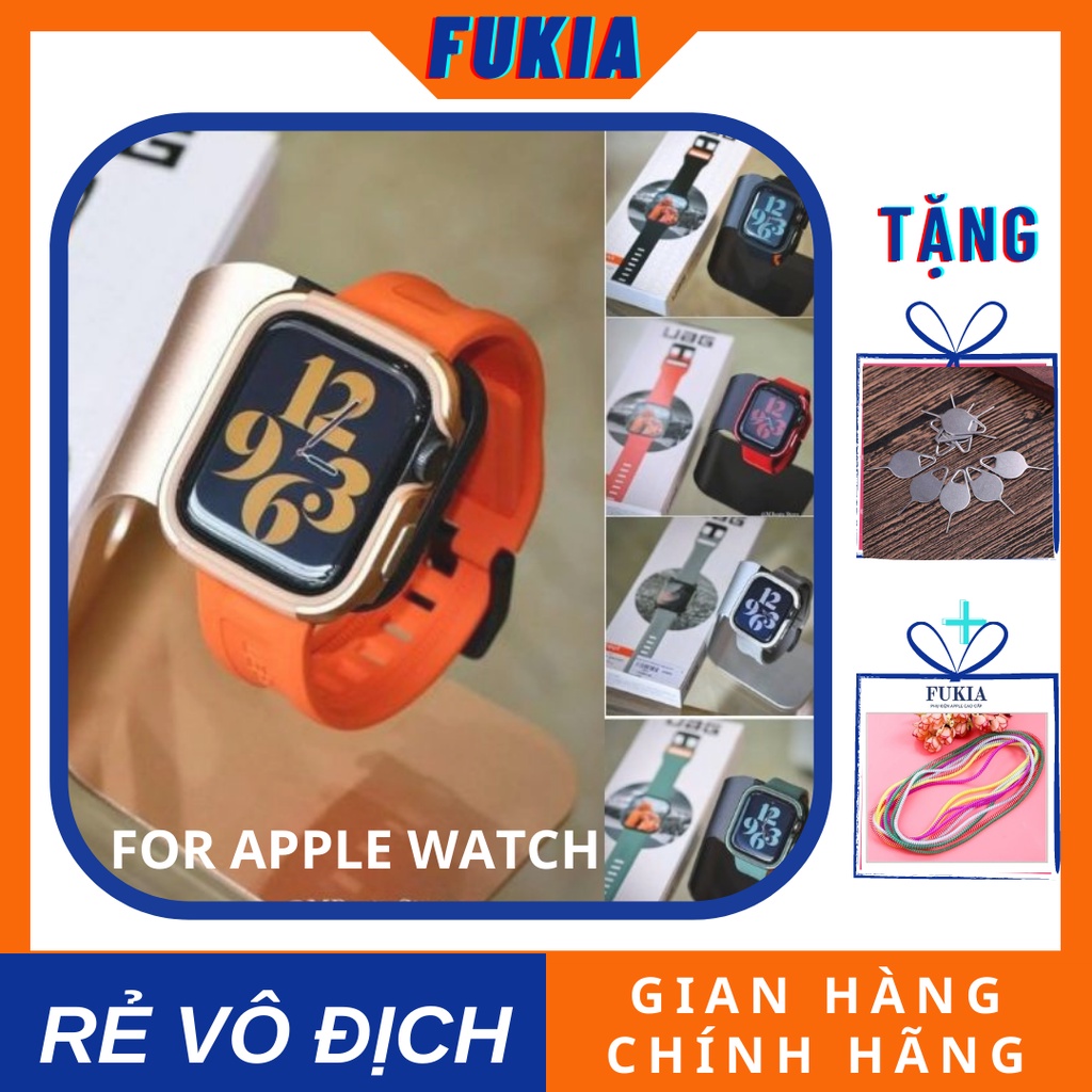 Combo dây silicon U.A.G và ốp viền thép Apple Watch đồng hồ thông minh Series 1/2/3/4/5/6/SE size 38/40/42/44 mm