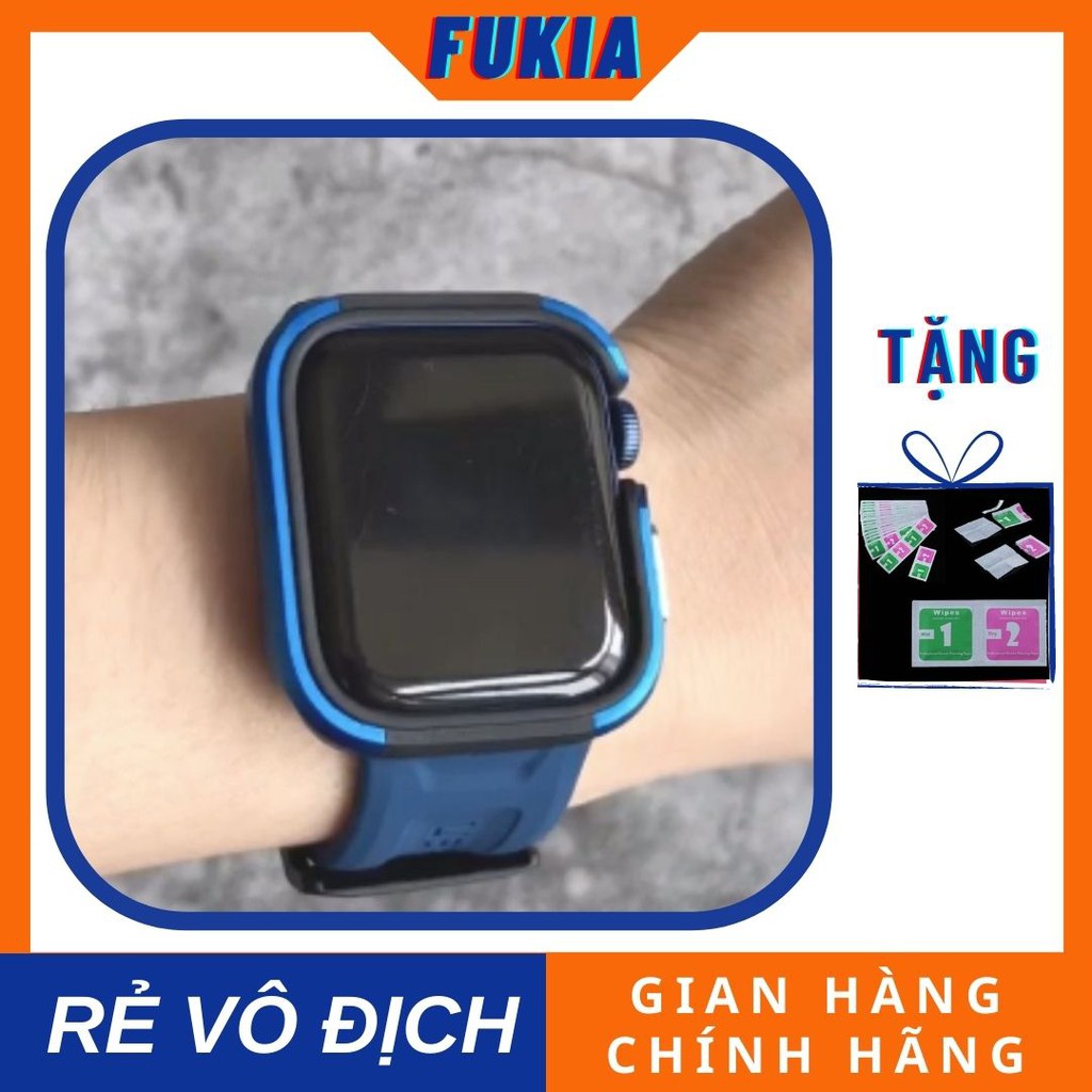 FUKIA cam kết: Combo dây silicon u.a.g và ốp viền thép xanh navy dành cho AW đồng hồ thông minh Series 1/2/3/4/5/6/SE size 38/40/42/44m