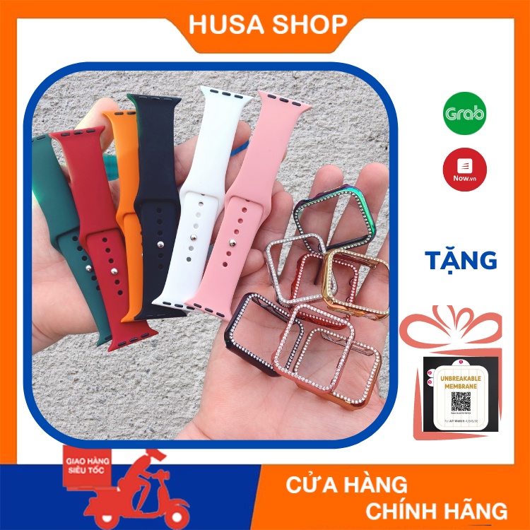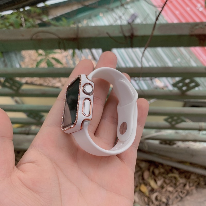 Combo Dây Silicon Và Ốp Đính Đá Lấp Lánh Cho Apple Watch 1/2/3/4/5/6/se size 38mm 40mm 42mm 44mm