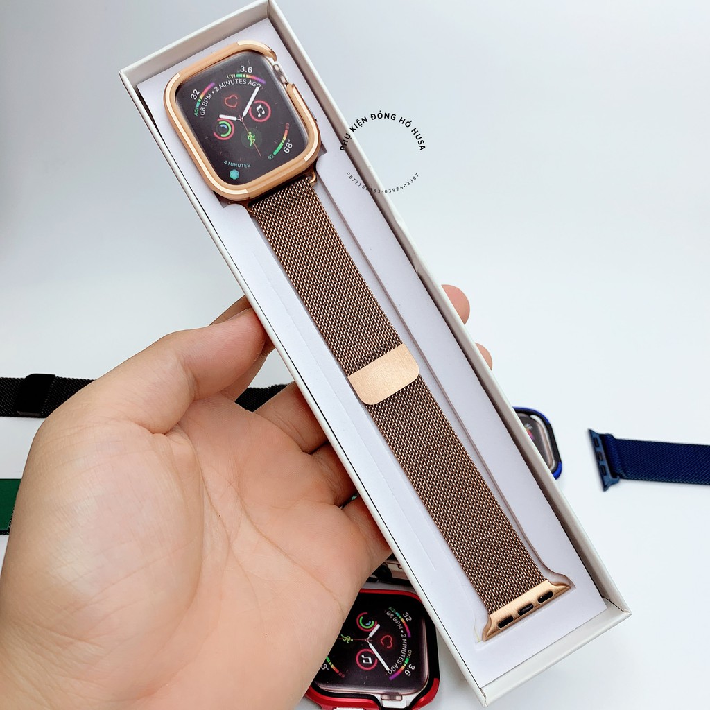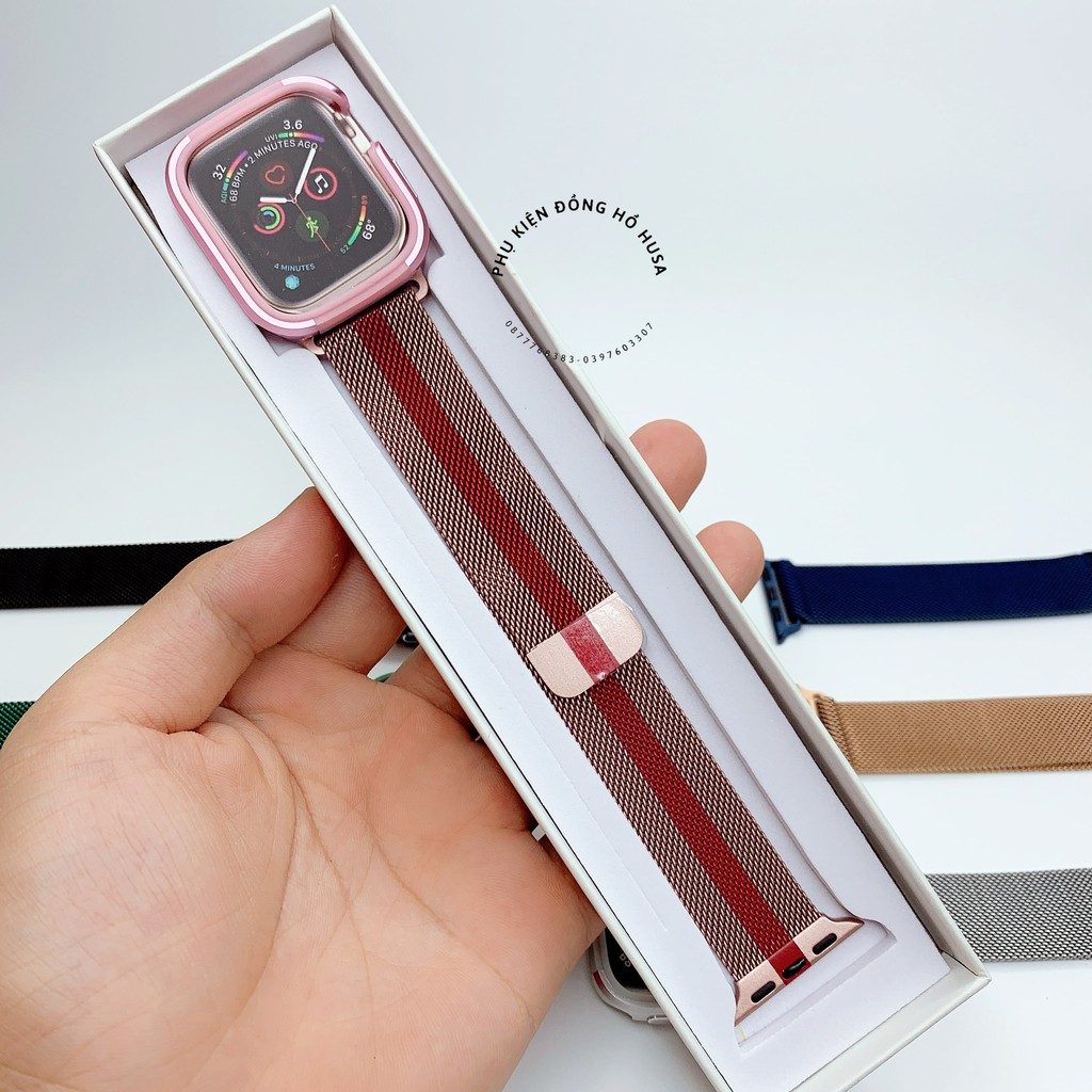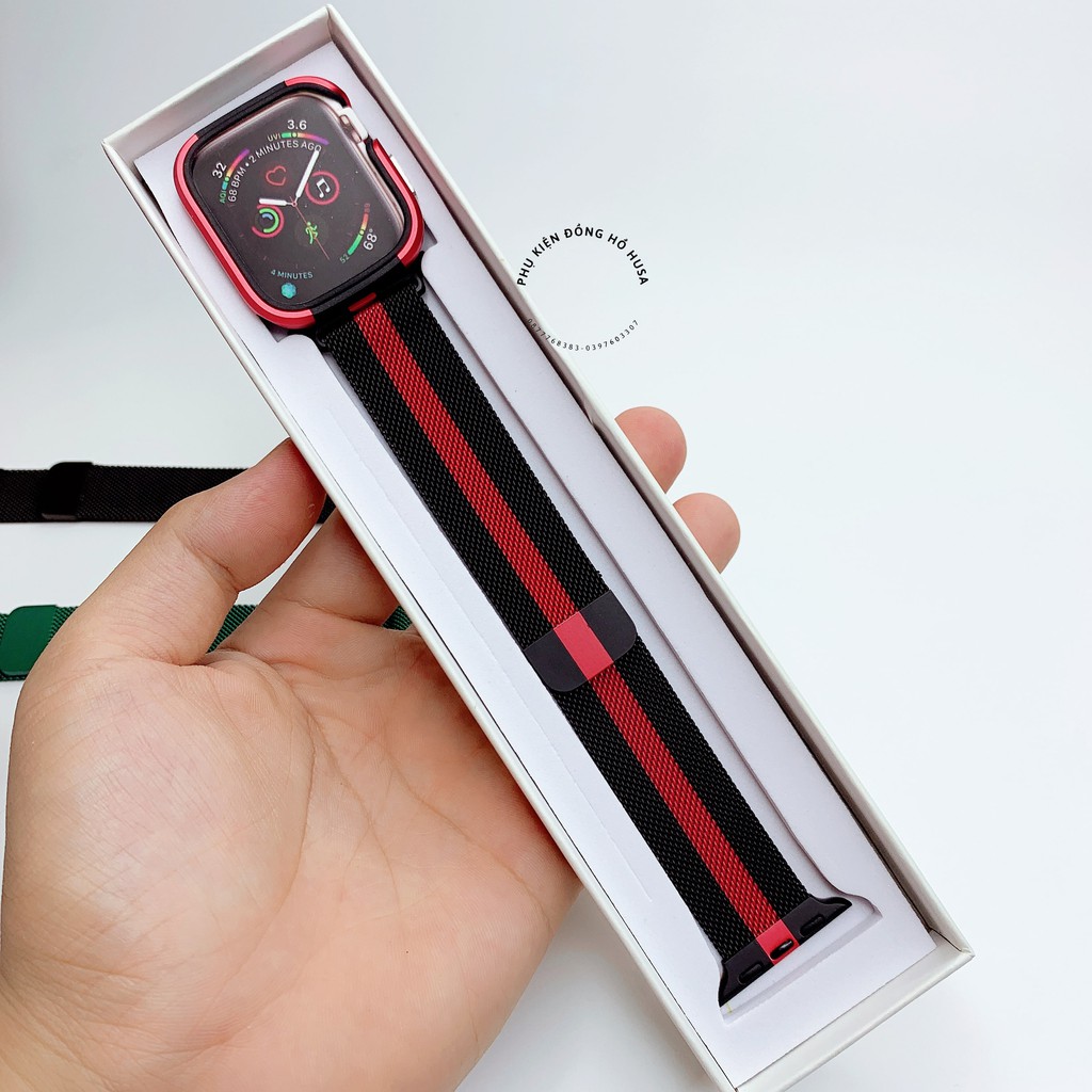 Combo dây thép không rỉ milan loop và ốp viền nhôm chống sốc cho Apple Watch 1/2/3/4/5/6/se