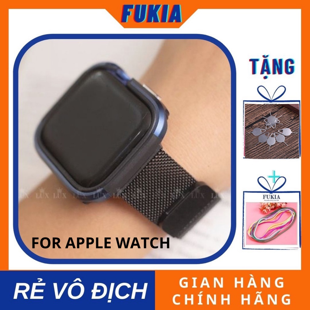 FUKIA cam kết: Combo dây thép milan và ốp viền thép đen Apple Watch đồng hồ thông minh Series 1/2/3/4/5/6/SE size 38/40/42/44 mm