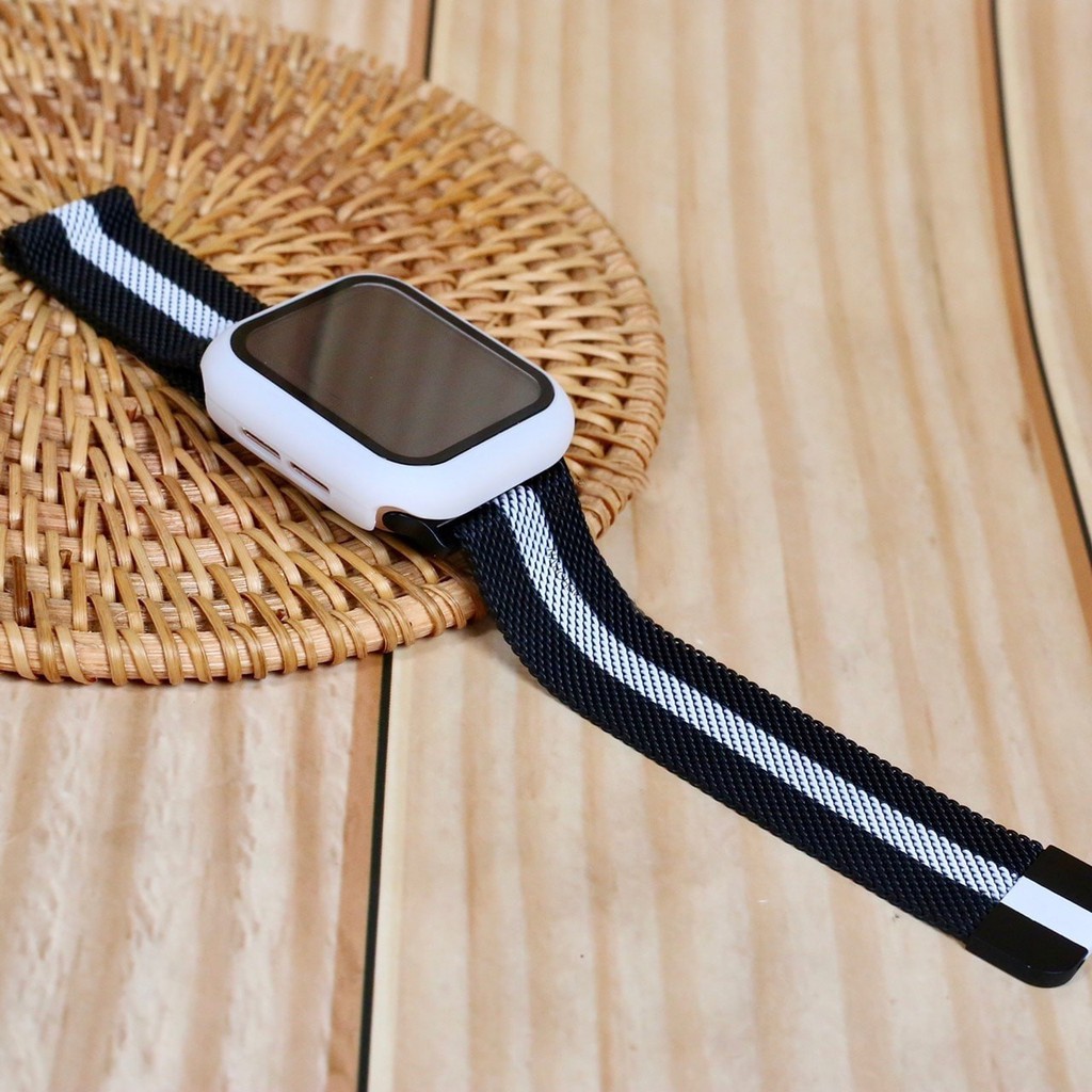 Điện Thoại & Phụ Kiện > Phụ kiện > Phụ kiện cho đồng hồ thông minh || Combo dây thép sọc và ốp kính cường lực apple watch đồng hồ thông minh series 1/2/3/4/5/6 size 38/40/42/44mm fukiaCòn hàng