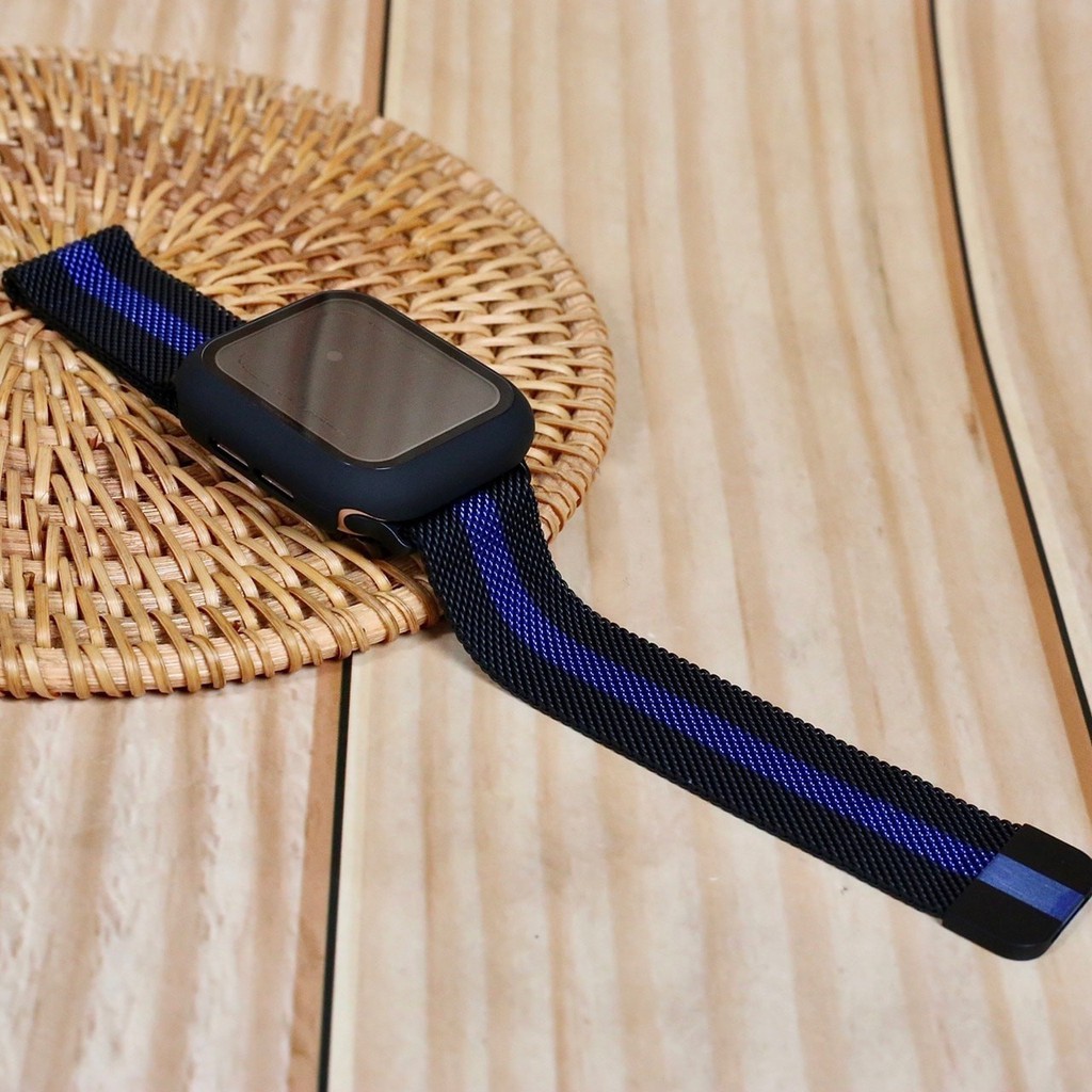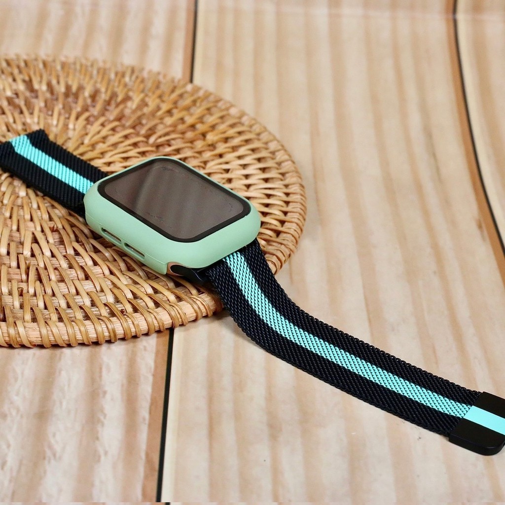 Combo dây thép sọc và ốp kính cường lực apple watch đồng hồ thông minh series 1/2/3/4/5/6 size 38/40/42/44mm fukia
