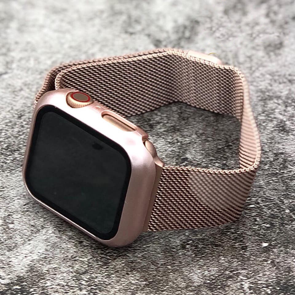 Combo dây thép và Ốp liền kính cường lực cho Apple Watch đồng hồ thông minh iWatch Series1/2/3/4/5/6/SE size 38/40/42/44