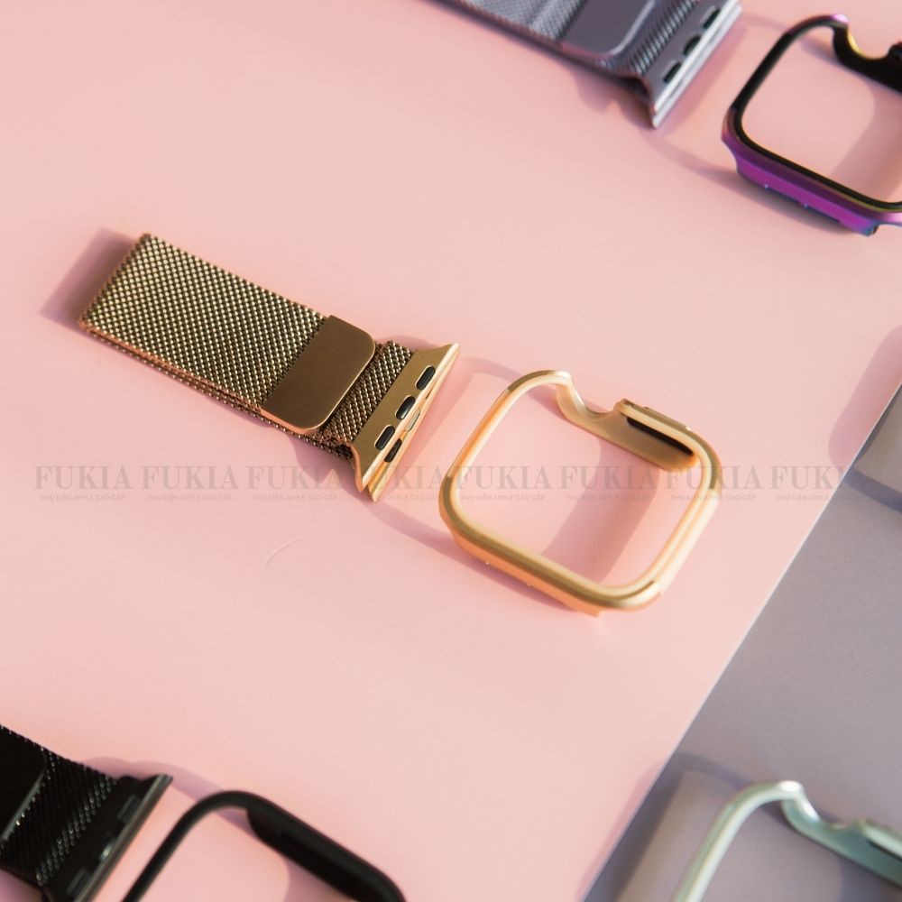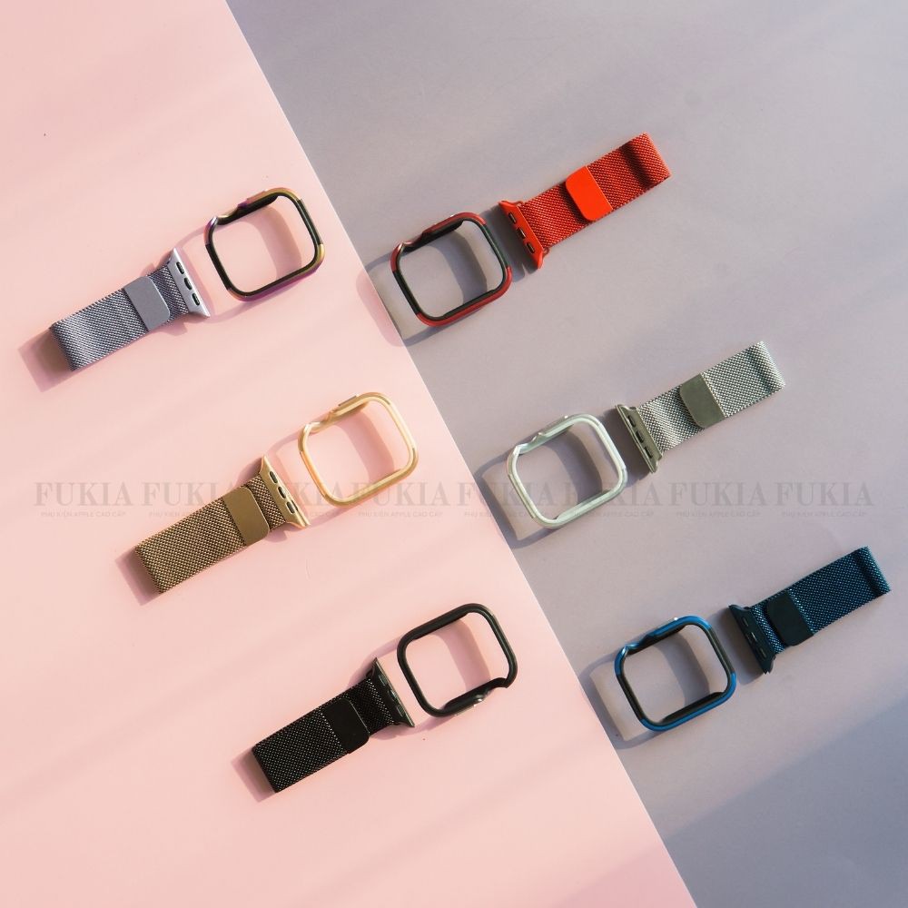 FUKIA cam kết: Combo dây thép và ốp viền thép dành cho Apple Watch đồng hồ thông minh Series 1/2/3/4/5/6/SE size 38/40/42/44 mm