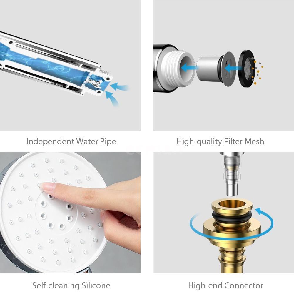 - Bề mặt đầu ra lớn 120mm, tối đa 53 lỗ thoát nước được thiết kế trên đầu vòi hoa sen.