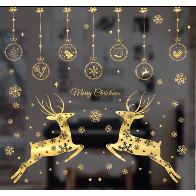 Nhà cửa & Đời sống > Trang trí nhà cửa > Rèm cửa, màn che || COMBO DECAL NOEL - Cặp Nai phối Rèm phụ kiện ánh vàng ( 3 tấm )Còn hàng