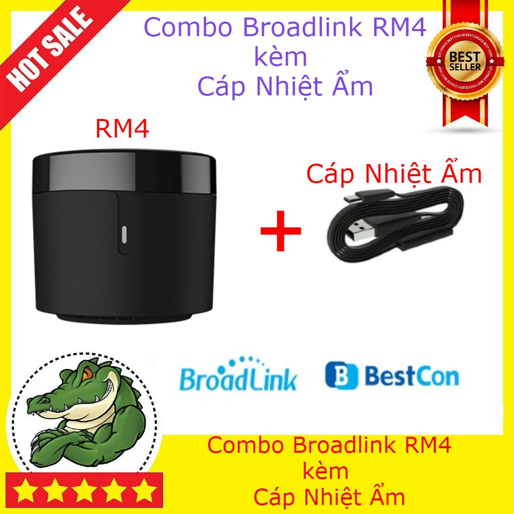 Combo điều khiển hồng ngoại Broadlink RM4C, RM4, RM PRO kèm cáp Nhiệt Ẩm - bản quốc tế 2020