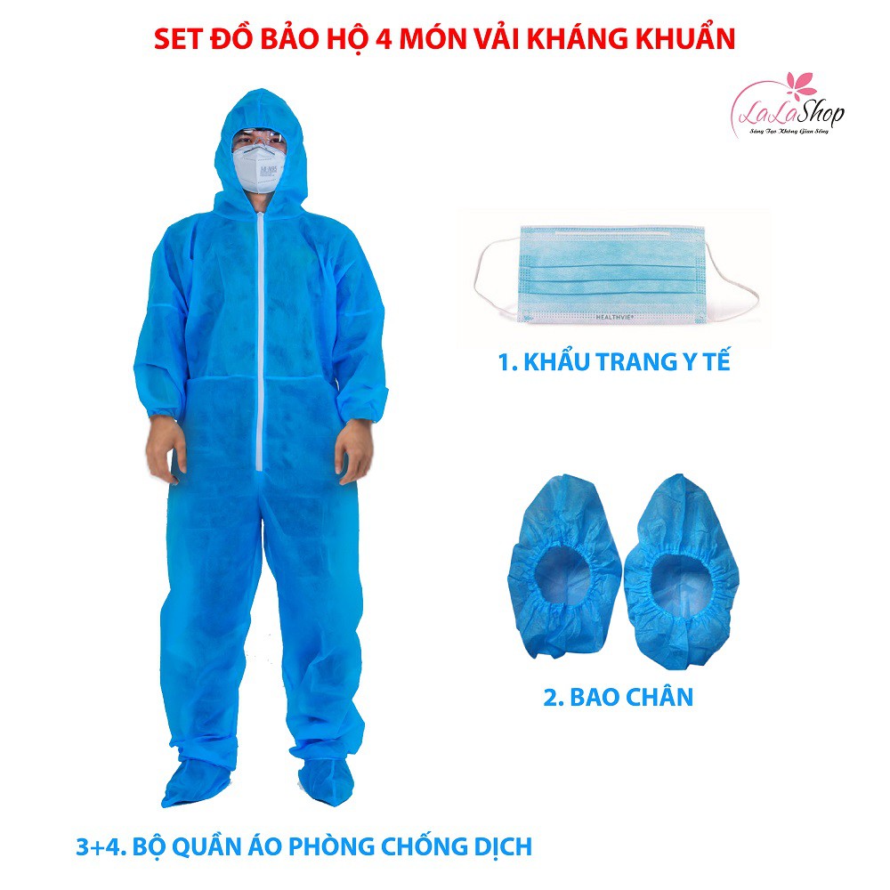 Combo đồ bảo hộ gồm 4 món làm từ vải kháng khuẩn PP định lượng phòng dịch an toàn khi ra đường, đi máy bay hay về quê