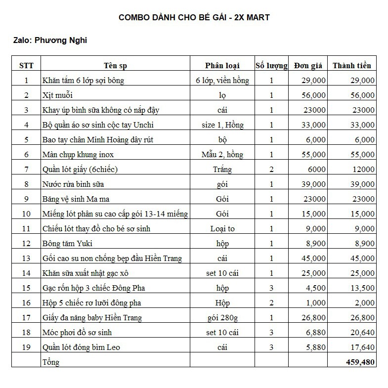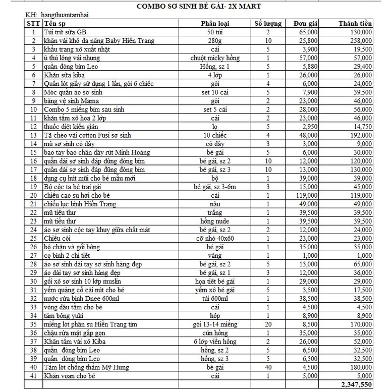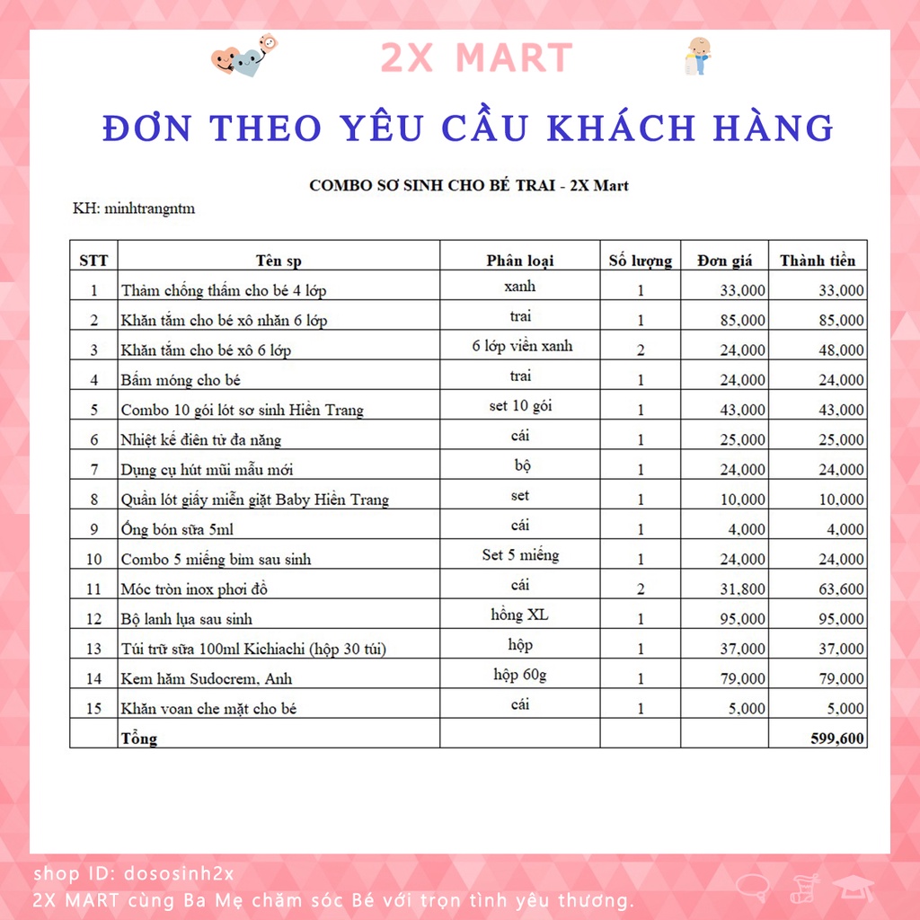 Giới thiệu Combo Đồ sơ sinh Trọn gói theo yêu cầu 2 - KH ib shop để đặt đơn