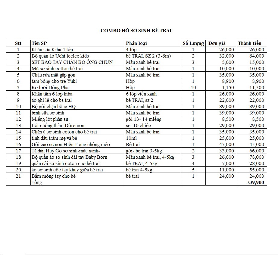Combo Đồ sơ sinh Trọn gói theo yêu cầu 2 - KH ib shop để đặt đơn