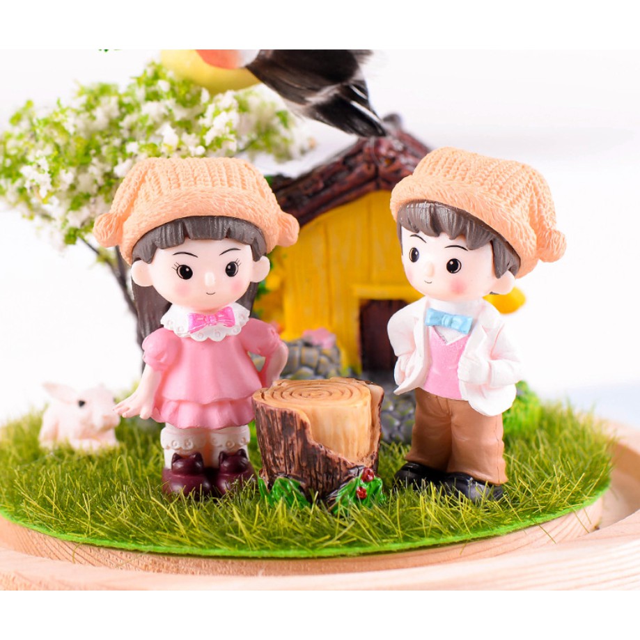 Giới thiệu Combo đôi bé trai-bé gái đội mũ len mặc đầm cực xinh trang trí tiểu cảnh, bonsai, móc khóa