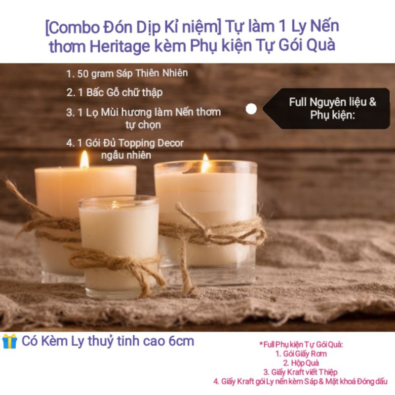 Nhà cửa & Đời sống > Trang trí nhà cửa > Nến & đồ đựng nến || [Combo Đón Dịp Kỉ niệm] Tự làm 1 Ly Nến thơm Heritage kèm Phụ kiện Tự Gói Quà - 9293store - 9293kitdecorCòn hàng