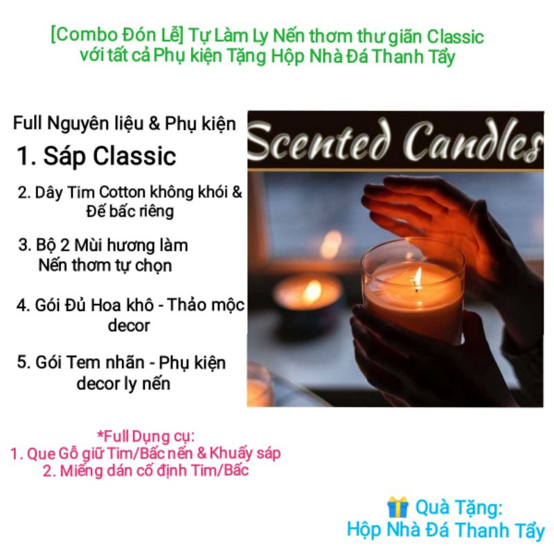 Nhà cửa & Đời sống > Trang trí nhà cửa > Nến & đồ đựng nến || [Combo Đón Lễ] Tự Làm Ly Nến thơm thư giãn Classic với tất cả Phụ kiện Tặng Nhà Đá Thanh Tẩy - 9293store - 9293kitdecorCòn hàng