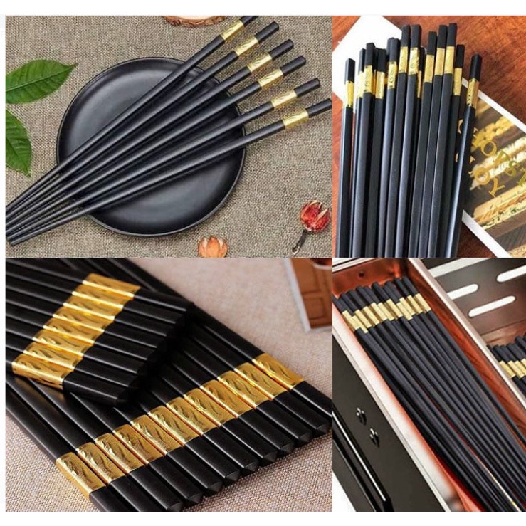 Combo đũa ăn nhật bản nhựa bọc hơp kim mạ Vàng Cao Cấp - An Toàn - Chống trượt nấm mốc, không hóa chất